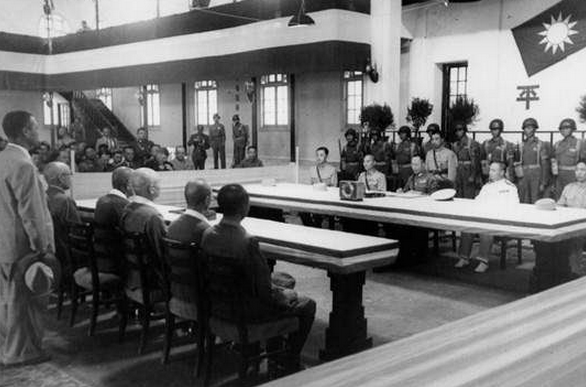 1945年9月8日,日本正式向世界宣布对中国无条件投降并签订相关协议。当天我们连早早把会场警戒起来,我就站在大台子前边,先是有飞机在会场上空飞,有空降兵往下降,多国代表到场,日本代表冈村宁次都已经哭不出声了,嘴一直都张得大大的,脸上沾满了鼻涕和泪水,颤巍巍的双腿站都站不稳,一直由两名日本兵扶着,很艰难地完成了签字仪式。